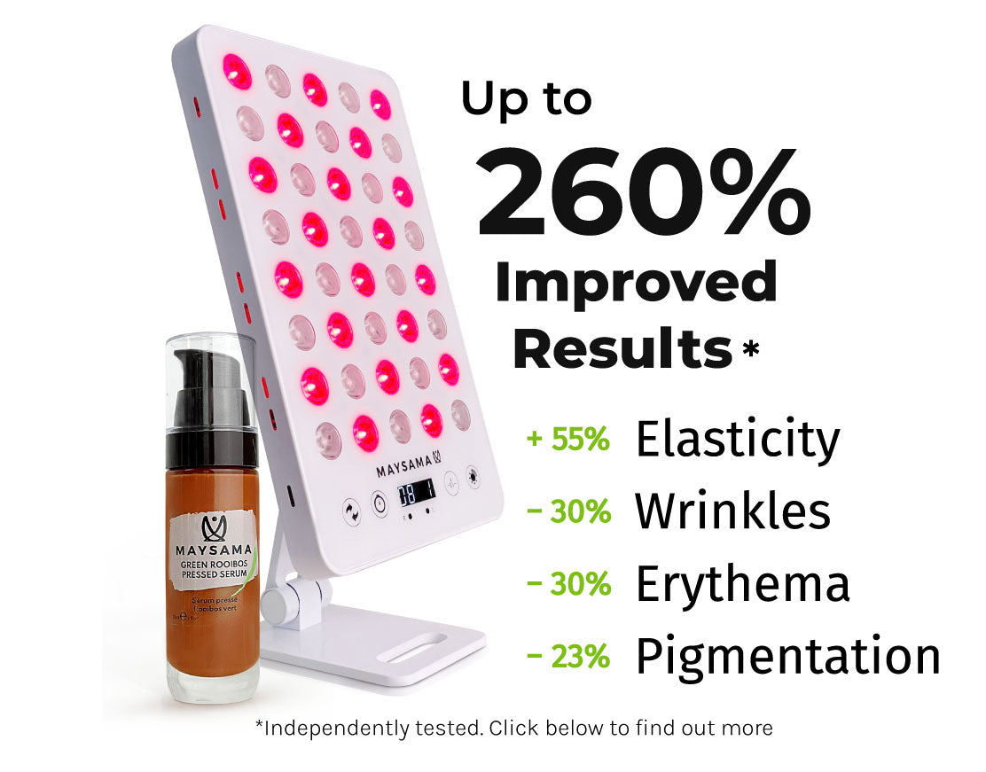 Combine Maysama's Green Rooibos Serum with our revolutionary Pulse40 LED Light Therapy Panel for up to 260% improved results for skin rejuvenation!