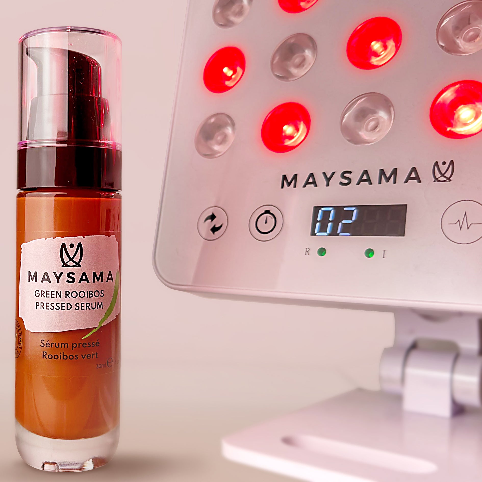It's official! Pre-treating your skin with Maysama Green Rooibos Pressed Serum prior to your Red LED Light Therapy Treatment session, more than doubles outcomes for skin rejuvenation.