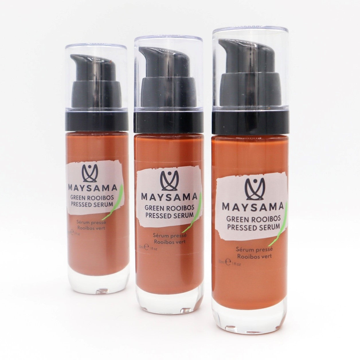 Maysama’s skincare is formulated with Aspalathin-enriched green rooibos tea extract, an Active Pharmaceutical Ingredient [API]. Sourced from South Africa with sustainable farming methods, Maysama’s green rooibos undergoes patented extraction, which concentrates the main flavonoid, Aspalathin, responsible for its antioxidant properties, making it 70 times more potent than standard rooibos tea.