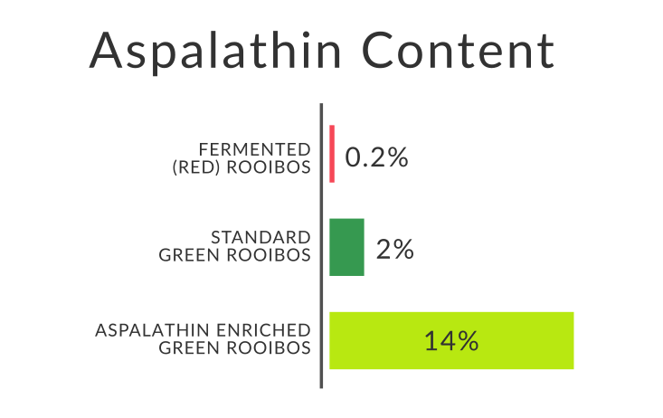The Aspalathin Content In MAYSAMA’s Pharmaceutical Grade Green Rooibos Extract Is 14% Compared To Just 2% In Standard Green Rooibos And Only 0.2% In Red Rooibos.