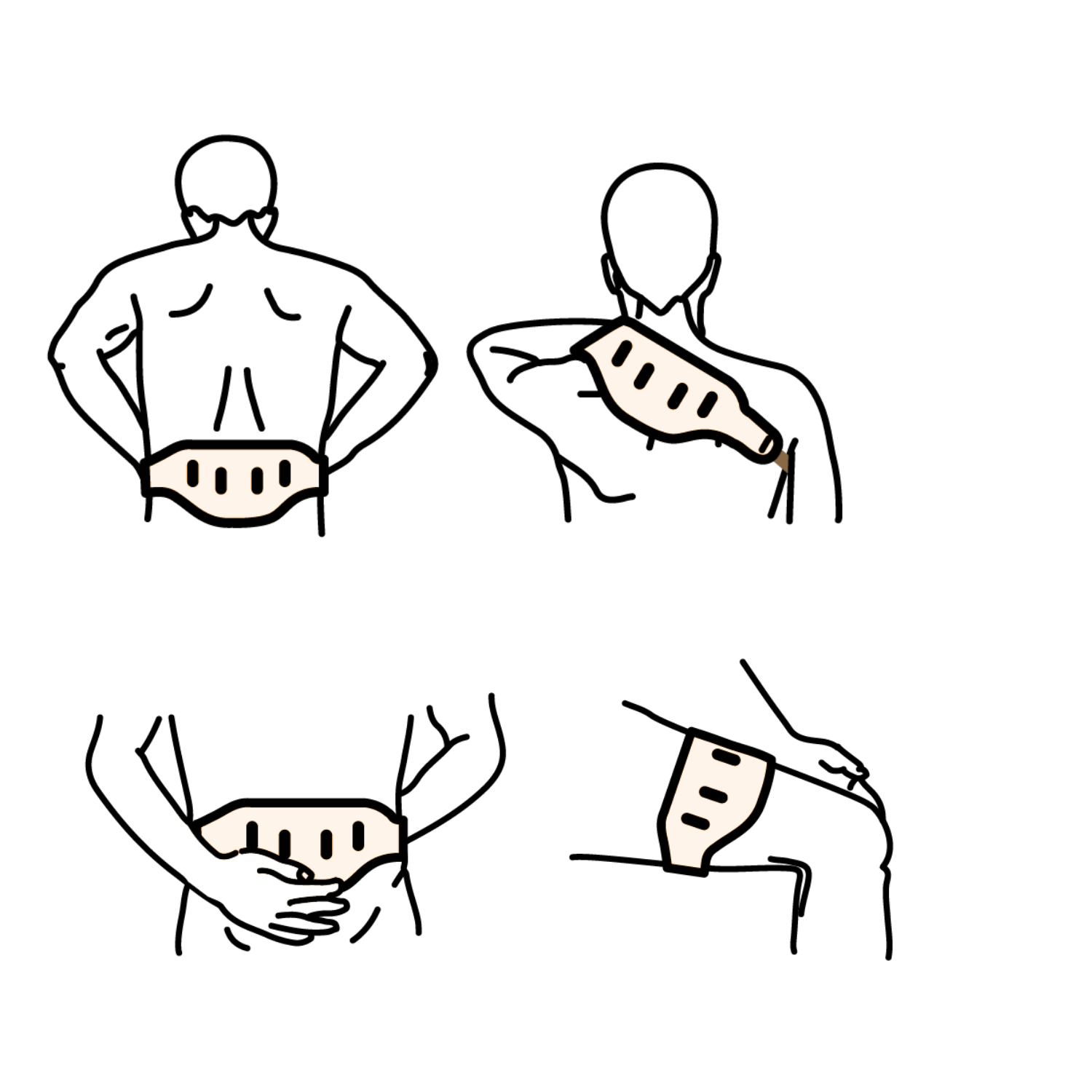 Attach the controller to the belt via the magnet and wrap the belt around the waist or preferred body part, using the Velcro strap to secure it. Adjust the straps if necessary.