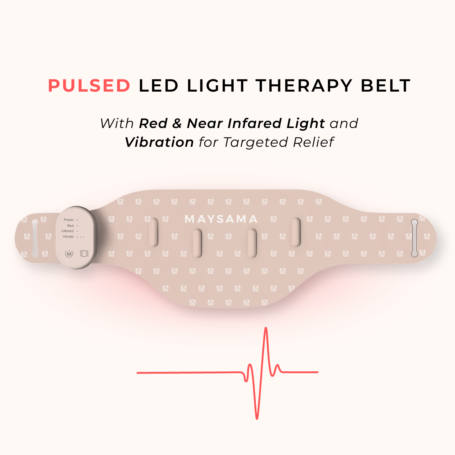 Maysama LED light therapy belt combines advanced pulsed LED technology with gentle vibration massage to promote faster muscle recovery and repair, whilst supporting relaxation and overall well-being.