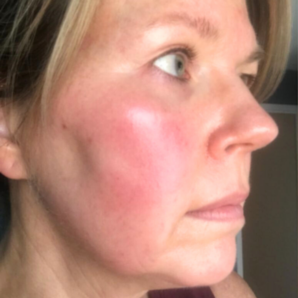 YouTuber, TinasBestMidlife, attributes Maysama Green Rooibos Serum, partnered with red light therapy, in reducing her rosacea flushing.