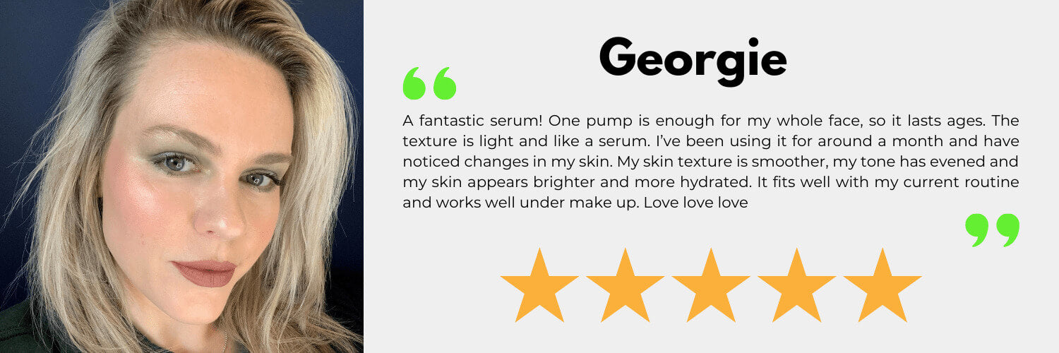 Despite my age , I don’t have lines and my skin is ok, but I can see that it feels plumper and i can notice the brown spot near my ear fading.And the glow is cherry on the cake.