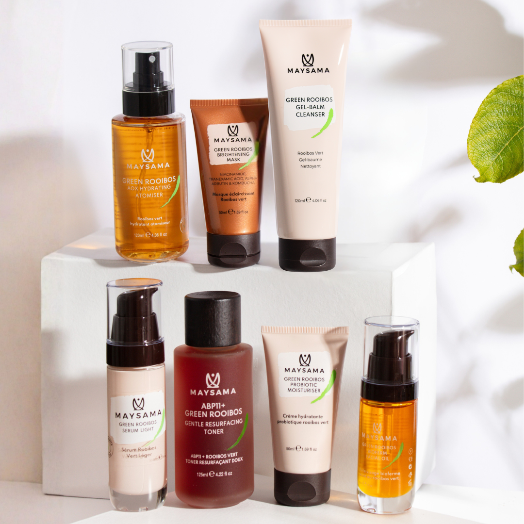 All formulations are fortified with Maysama's signature Aspalathin-enriched Green Rooibos extract, for powerful antioxidant protection and to improve outcomes for Red Light Therapy*