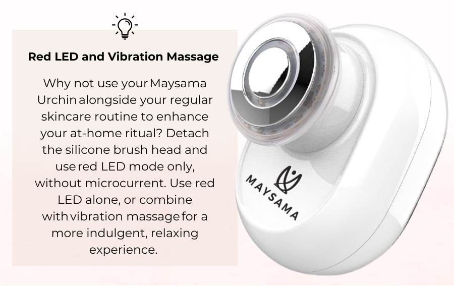 Maysama Urchin is an innovative skin rejuvenation device with sonic cleansing and microcurrent modality, integrated with pulsed red LED light. Our multi-benefit device deeply cleanses the skin, whilst promoting lymphatic and micro-circulation, and stimulates facial muscles to firm & tone.